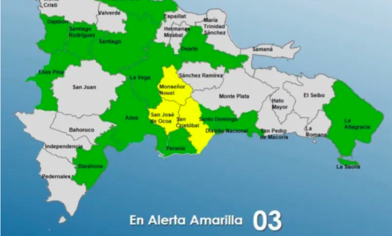 El Centro de Operaciones de Emergencias (COE) aumentó a tres provincias en alerta amarilla y 12, junto al Distrito Nacional, en alerta verde, debido a las lluvias que continúan registrándose en el país.